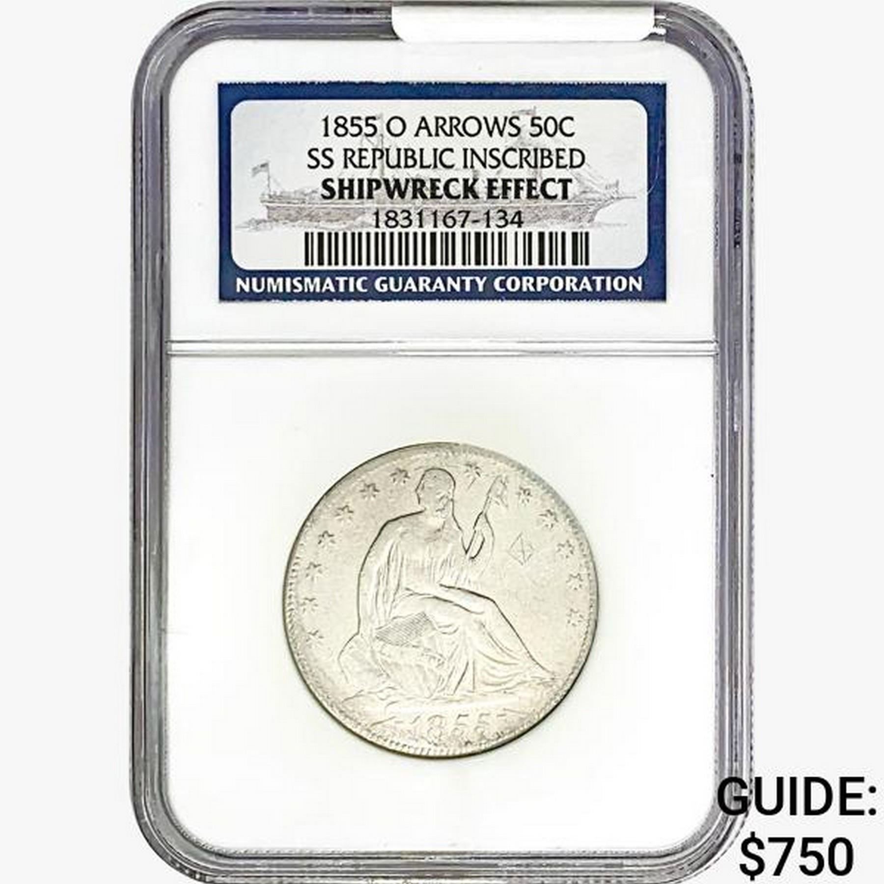 1855-O Seated Lib. 50C NGC Shipwreck Effect SS REP