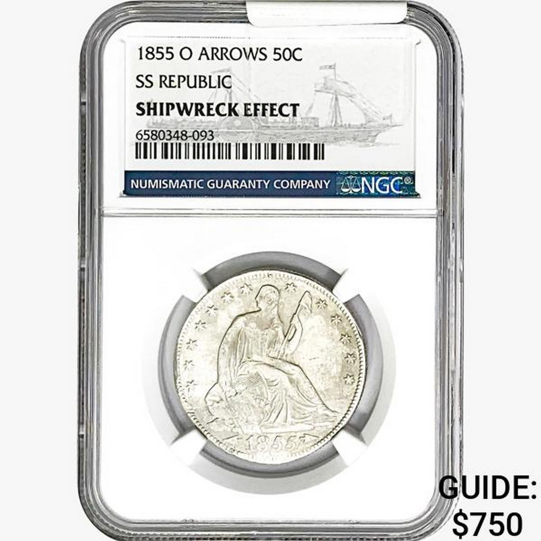 1855-O Seated Lib. 50C NGC Shipwreck Effect SS REP