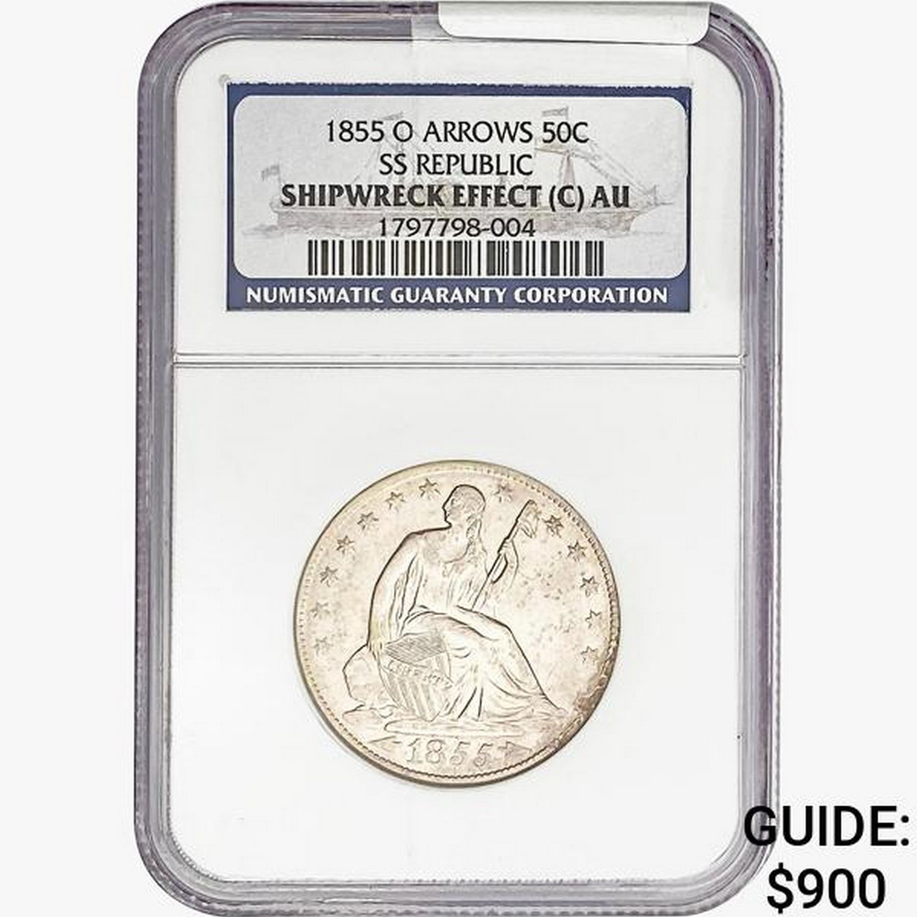 1855-O Seated Liberty Half Dollar NGC AU ARWS SS Rep. Shipwreck Effect (C)