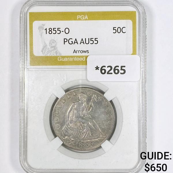 1855-O Seated Liberty Half Dollar PGA-AU55 Arrows