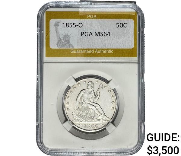 COINS AND CURRENCY LISTED IN GSA’S CATALOG AS GRADED AND ENCAPSULATED BY PCGS, NGC, ANACS, ICG, PCGS CURRENCY, PMG, PCGS BANKNOTE GRADING, CMC OR ANY OTHER THIRD-PARTY GRADING SERVICE ARE LIKEWISE SOLD “AS-IS” EXCEPT AS EXPRESSLY SET FORTH HEREIN. ALL THIRD-PARTY GRADING SERVICE GUARANTEES, INCLUDING AUTHENTICITY, ARE THE SOLE RESPONSIBILITY OF THE THIRD-PARTY GRADING SERVICE AND NOT WARRANTIES OR GUARANTEES OF GSA. BIDDERS SHOULD CONTACT THESE THIRD-PARTY GRADING SERVICES DIRECTLY WITH RESPECT TO ANY CLAIMS OR QUESTIONS THEY MAY HAVE CONCERNING THEIR GUARANTEES AND WARRANTIES. BIDDERS ACKNOWLEDGE AND AGREE THAT AUCTIONEER IS NOT BOUND BY OR LIABLE FOR ANY OPINION OR CERTIFICATION BY ANY THIRD-PARTY GRADING SERVICE. REMOVAL OF A PRODUCT FROM ITS PROTECTIVE CASING OR HOLDER OR ALTERATION OF ANY COIN HOLDER WAIVES ALL RIGHTS CONCERNING THE PRODUCT CONTAINED THEREIN.