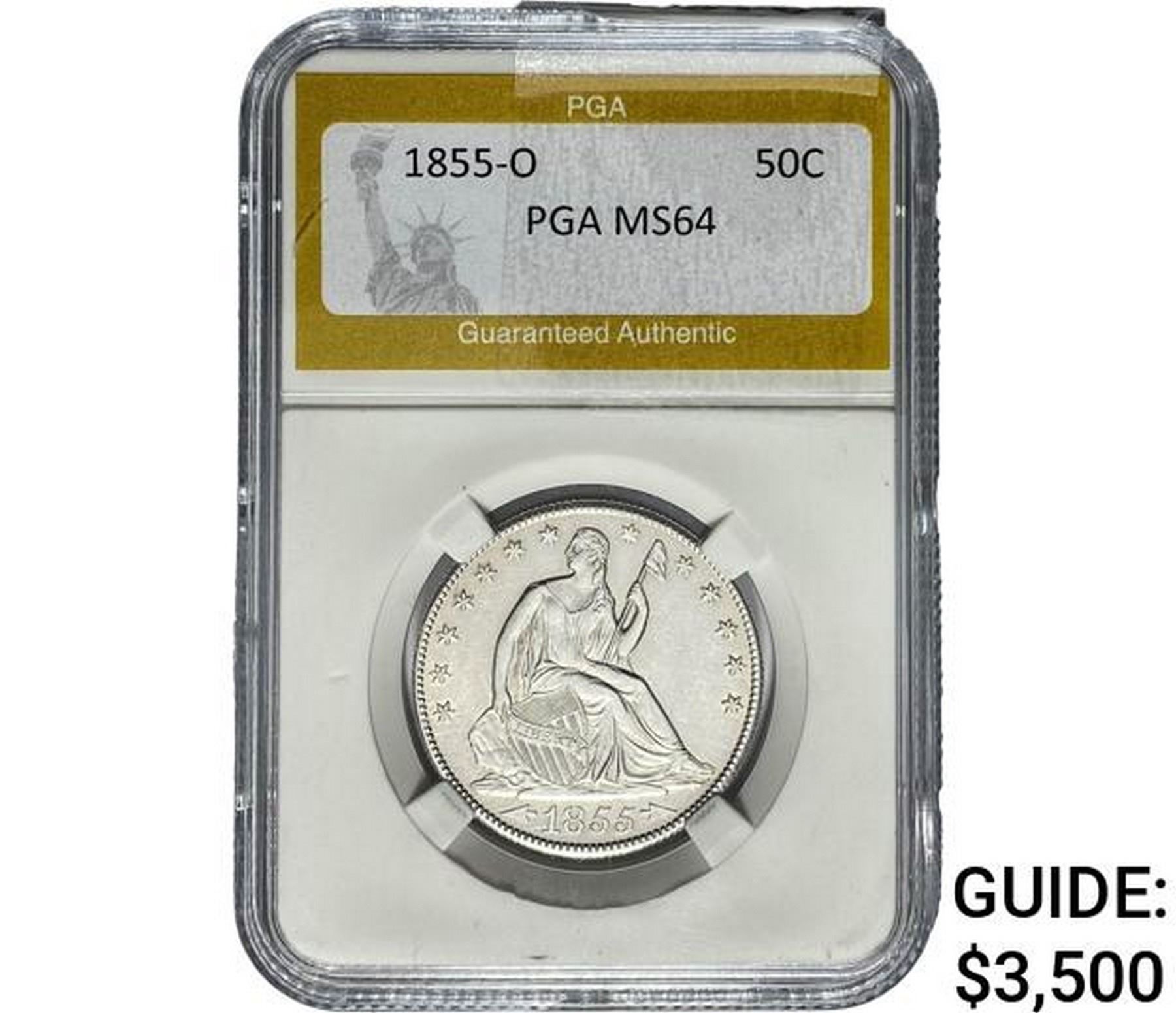 1855-O Seated Liberty Half Dollar PGA MS64