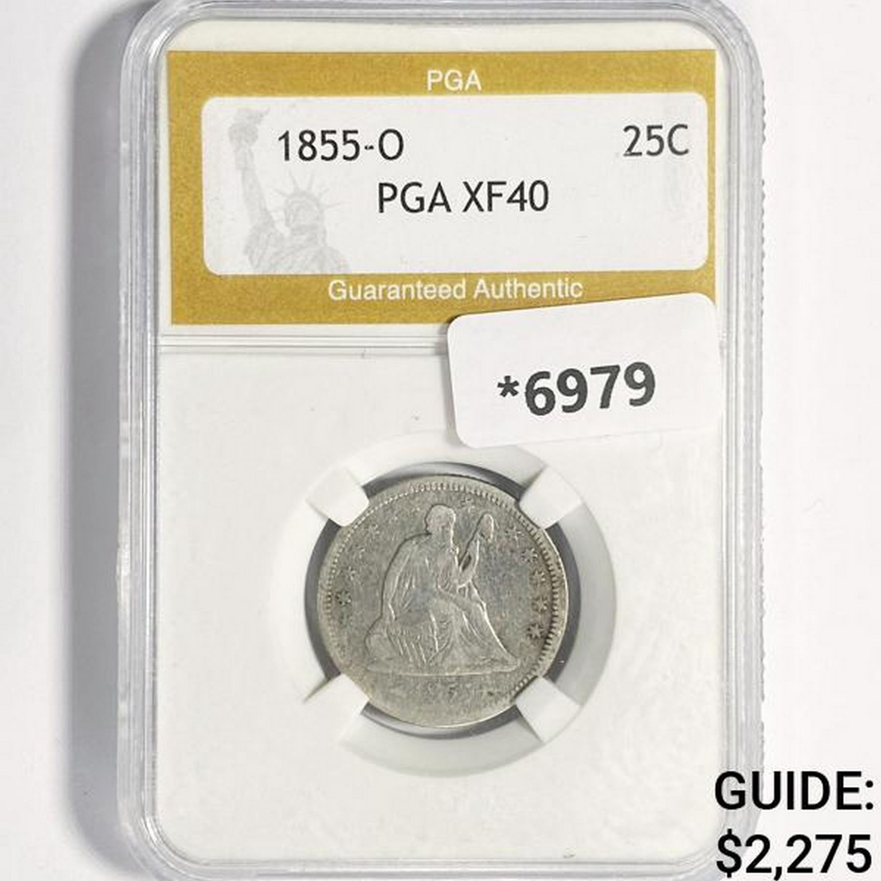 1855-O Seated Liberty Quarter PGA-XF40