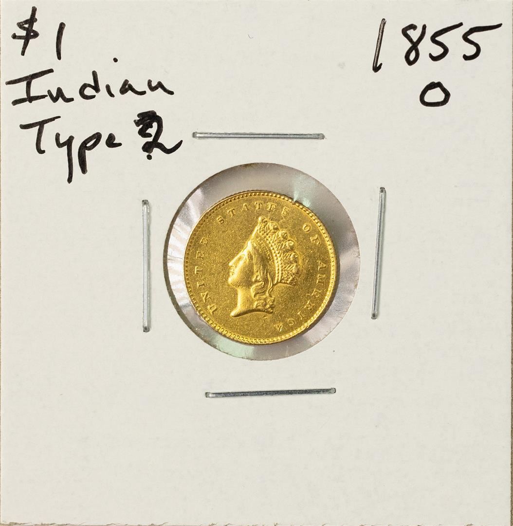 One 1855-O Type 2 $1 Indian Head Gold Dollar Coin.
