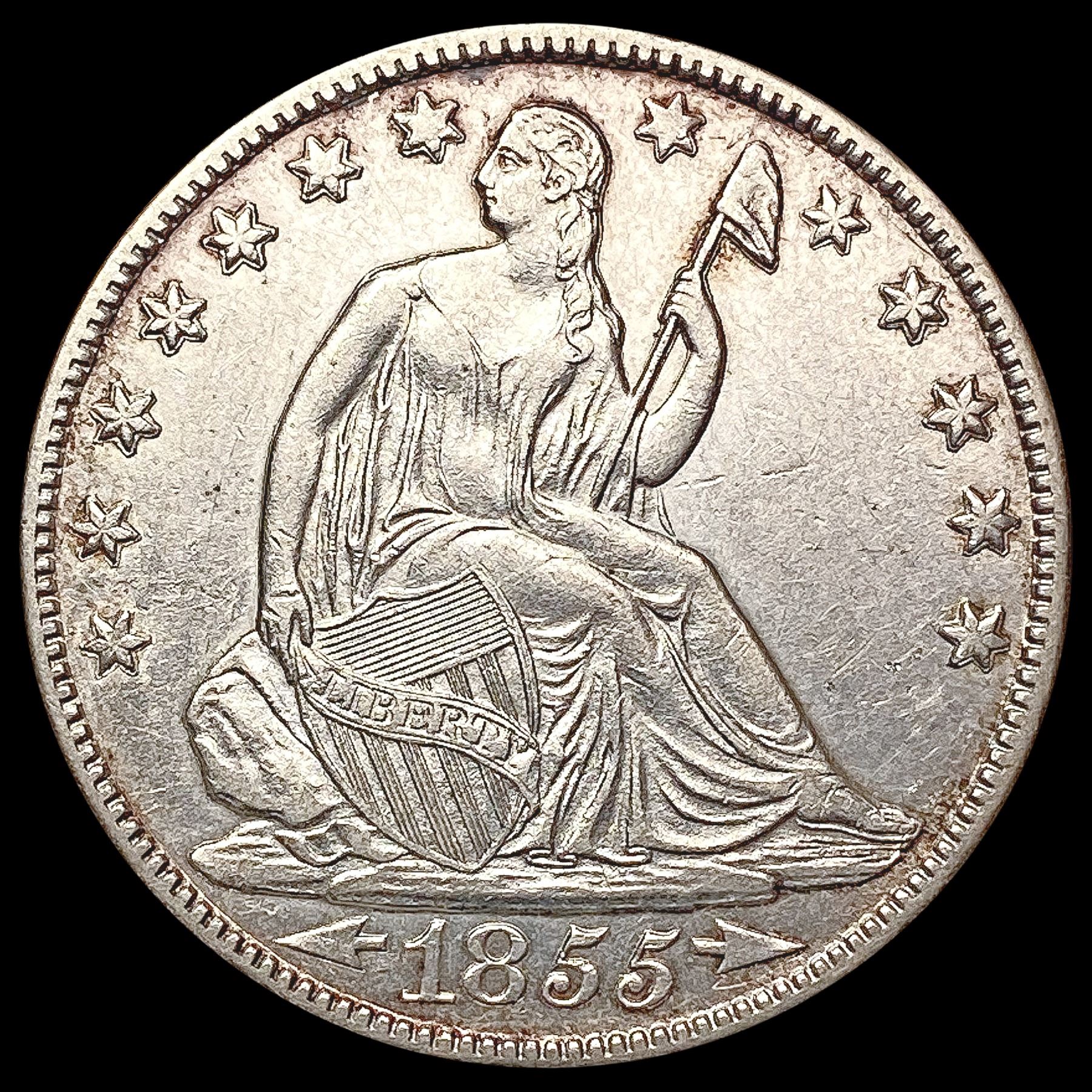 1855-O W/ Stars Seated Liberty Half Dollar CLOSELY UNCIRCULATED