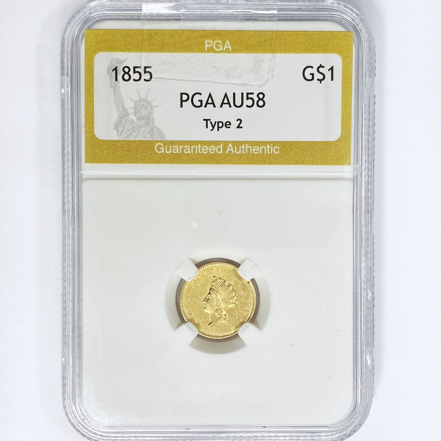 1855 Rare Gold Dollar PGA AU58 Type 2