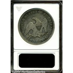 <B>1855<S$1>--Scratched--ANACS. XF Details, Net VF20.</B></I> A scarce date in all grades, and even more challenging than its mintage of 26,000 pieces would indicate. This piece appears to be strongly struck but is moderately worn. The smooth surfaces show extensive charcoal-gray and olive patina. The only obvious abrasions are a couple of marks in the field above the eagle's head, and a scratch on the eagle's left (facing) wing.<BR><I>From The Paulsboro Collection, Part Two.</B></I> <BR><BR><B>Important notice:</B> Heritage usually auctions material at the rate of 200-250 lots per hour. On some occasions eBay Live bid software or the Internet may not be able to keep up with the pace of the auction. We recommend placing a realistic absentee bid now as insurance to avoid disappointment. Occasionally the auctioneer may eliminate or reject an eBay Live bid, and the auctioneer may also reopen a lot after the close of the eBay live bidding (usually because we missed an audience bid), and may reject your bid even if it shows you as the winning bidder. By bidding via eBay Live, you agree that Heritage may award the lot to another bidder at its sole discretion under the circumstances described above or any other reasonable circumstances. Since eBay bids are not shown to us until we open the lot on the floor, we treat those bids just like floor bids. In most cases the floor responds before the eBay bid is presented to us, due to Internet lag time, so for consistency we have made it a policy that floor bids are always considered first over tie eBay live bids. Also please note that all Heritage lots purchased through eBay Live carry a 20% Buyer's Premium. Please make sure you read the Terms and Conditions before you bid. </span></font></tr></table></td></tr></table>