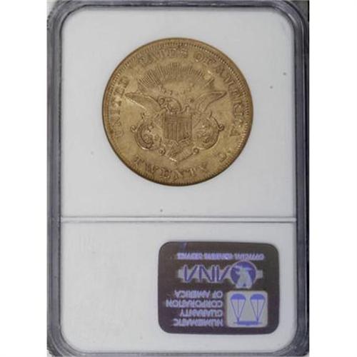<B>1855-S $20 AU53 NGC.</B></I> Distinct green-gold surfaces are splashed with traces of coppery-orange toning. Both sides have numerous tiny surface marks, not unusual for these large gold coins that served in the channels of Western commerce.<BR><BR><b>Shipping:</b> Coins & Currency (<a target="_blank" href="http://www.heritageauctions.com/common/shipping.php">view shipping information</a>)