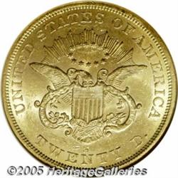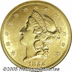 <B>1855-S $20 AU58 NGC.</B></I> Lustrous and attractive yellow-gold with frosty surfaces. A few minor bagmarks and light traces of wear on the highest points keep this from a Mint State grade. Although quite a few of these were discovered in the <I>S.S. Central America</B></I> treasure, this is still an elusive and desirable issue.<BR><I>From The Richard J. Chouinard Collection of United States Coins, Part Three.</B></I>