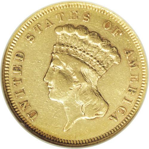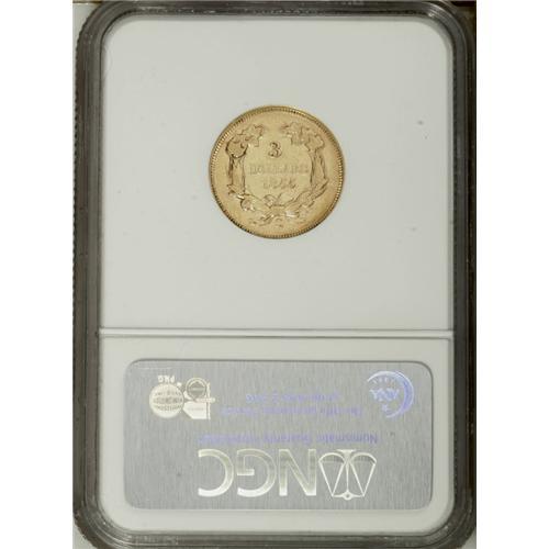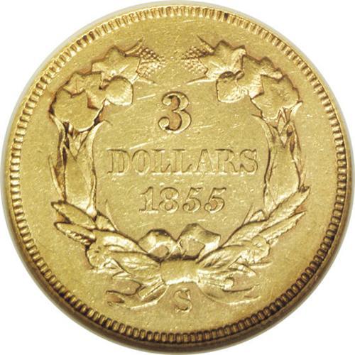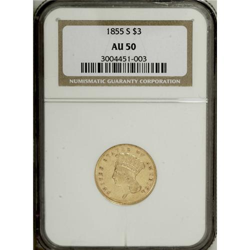 1855-S $3 AU50 NGC. Only 6,000 pieces were produced of