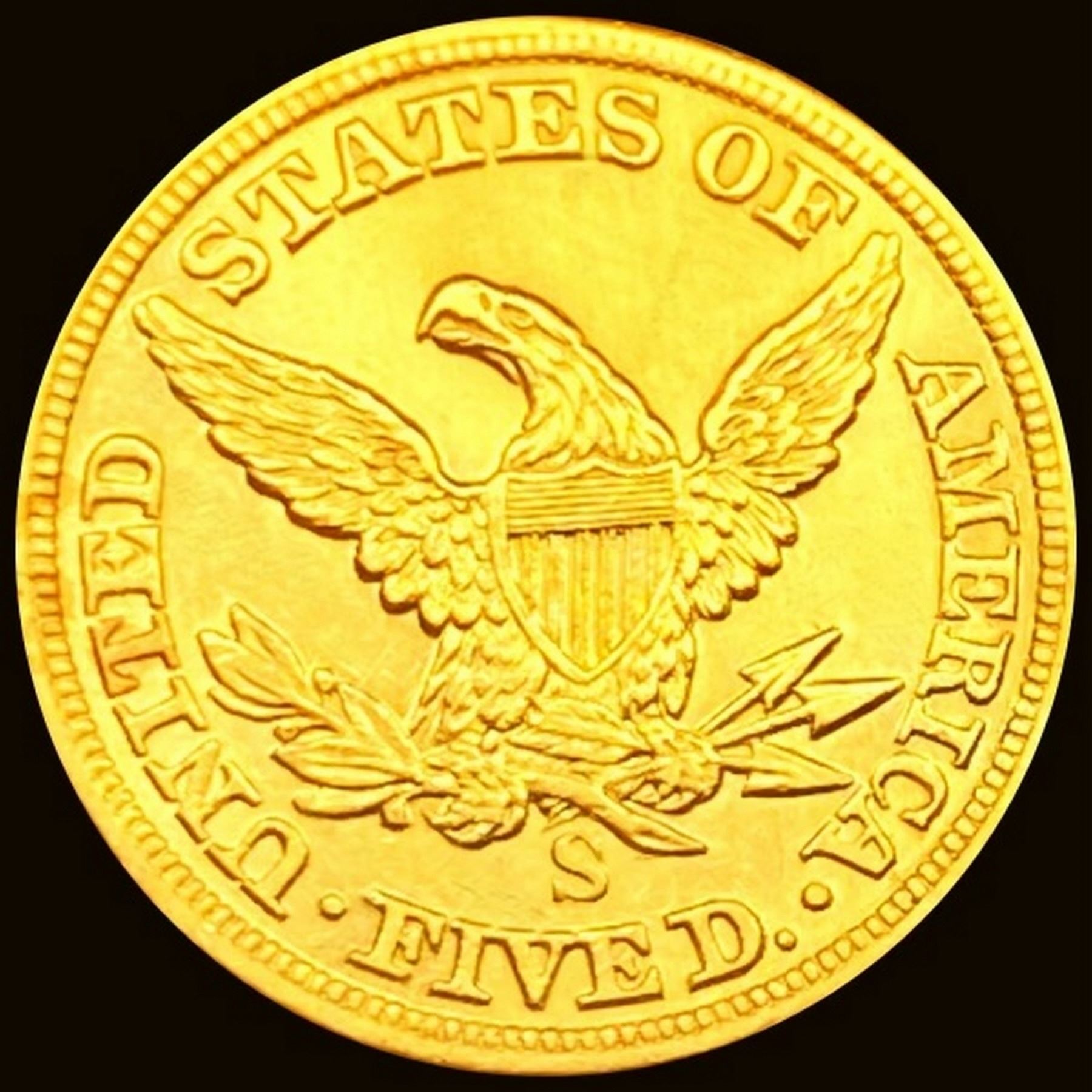 1855-S $5 Gold Half Eagle UNCIRCULATED +