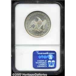 1855-S 50C Arrows MS67 NGC. WB-101. Large Mintmark. The landmark James B. Pryor specimen that was sold eight years ago as part of the James Bennett Pryor Collection of Half Dollars, at the time residing in a PCGS MS66 holder. The narrative of this incredible Gem 1855-S reads in part: "The 1855-S is a rarity in any and all grades, and even one worn smooth would be worthy of special mention in a catalogue. In grades such as VF and EF it is a notable rarity, and in Mint State it is a formidable rarity. MS-66? Hitherto unheard of! It is probably correct to state that whether you ever have a gem 1855-S in your collection will be determined by your success or lack thereof with the present coin. It is further probably correct to say that the morning after the sale no amount of money would secure a duplicate unless the winner of this lot wishes to sell. Not only is this one of the most important coins from the James Bennett Pryor Collection sale, it is also one of the greatest and most desirable rarities to be sold in our generation. The no drapery feature (from die polishing) is interesting, but its significance in the marketplace is far eclipsed by the importance of this as a date and mintmark in a grade virtually unknown. A bit of mint history: Although the San Francisco Mint began operations in 1854 using the former facilities of Curtis, Perry, & Ward (who struck Moffat and other private gold coins), half dollars were not made there until a year later, 1855. This heralded a run of Liberty Seated half dollars that extended for many years. Today, all of those dated in the 1850s are very rare if in Mint State, and the 1855-S is exceedingly rare. In contrast to usual practice, a special striking of the 1855-S was sent to Philadelphia and incorporated in the Mint Cabinet. Two additional Proofs are reported in private hands." An article by Heritage's Mark Emory entitled "Mark Emory's Special Coin" mentions this exact 1855-S Half Dollar as being one of the two favorite silver coins he had ever owned, and that is quite an endorsement. Population: 1 in 67, 0 finer (11/03). Ex: Lester Merkin to William Mitkoff, then purchased 05/73 by James B. Pryor; James B. Pryor Collection (Bowers and Merena, 01/1996), lot 151 where it realized $72,600. Important notice: Heritage usually auctions material at the rate of 200-250 lots per hour. On some occasions eBay Live bid software or the Internet may not be able to keep up with the pace of the auction. We recommend placing a realistic absentee bid now as insurance to avoid disappointment. Occasionally the auctioneer may eliminate or reject an eBay Live bid, and the auctioneer may also reopen a lot after the close of the eBay live bidding (usually because we missed an audience bid), and may reject your bid even if it shows you as the winning bidder. By bidding via eBay Live, you agree that Heritage may award the lot to another bidder at its sole discretion under the circumstances described above or any other reasonable circumstances. Also please note that all Heritage lots purchased through eBay Live carry a 20% Buyer's Premium. Please make sure you read the Terms and Conditions before you bid.