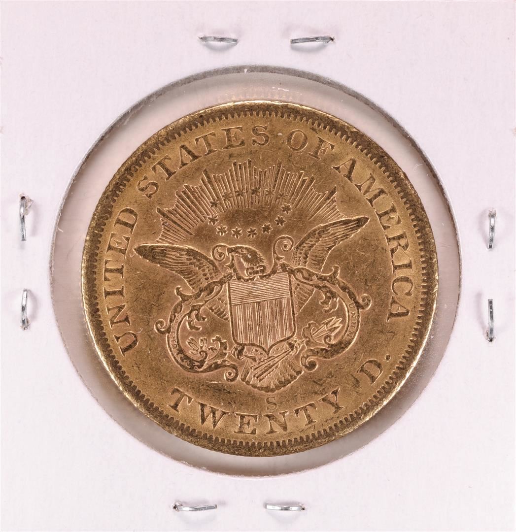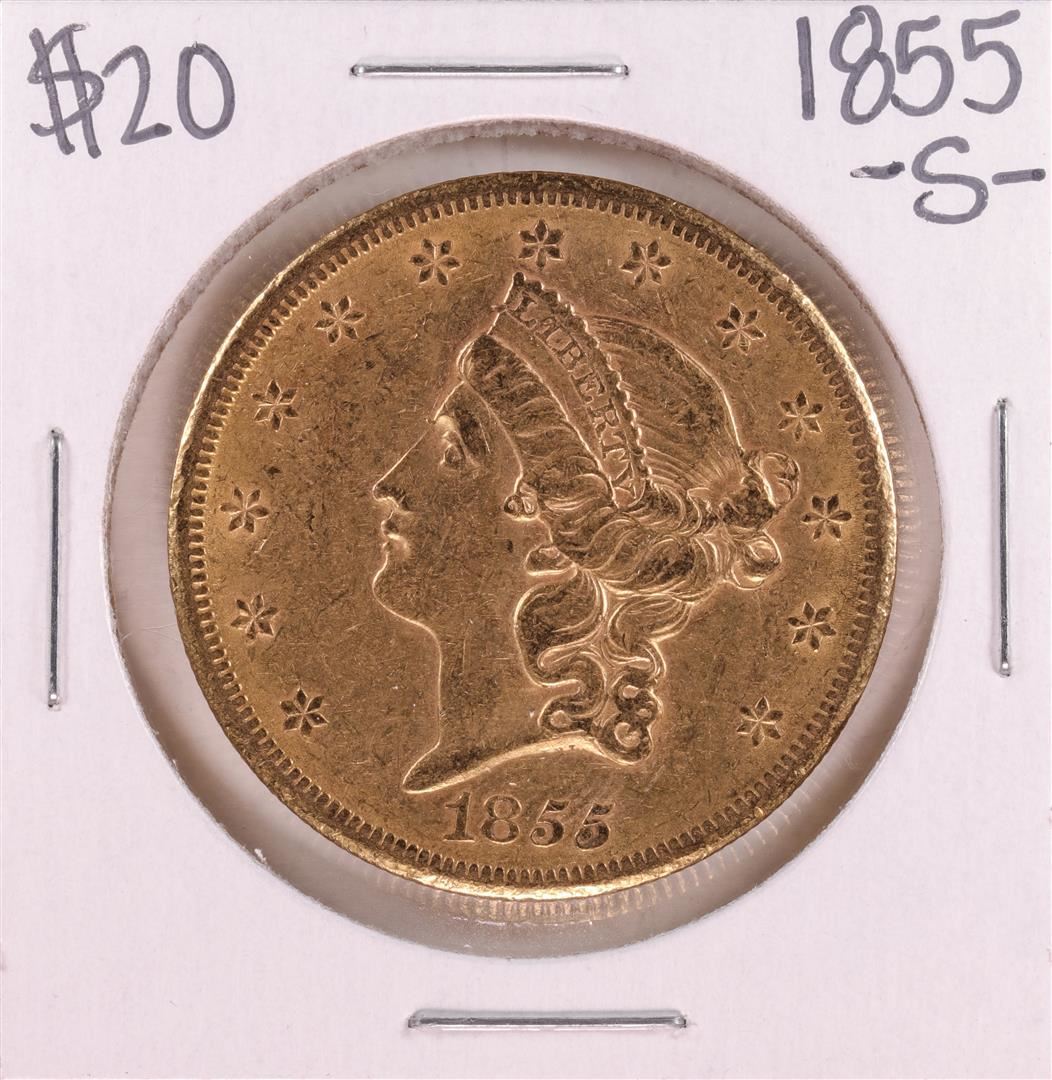 One 1855-S Type 1 $20 Liberty Head Double Eagle Gold Coin.
