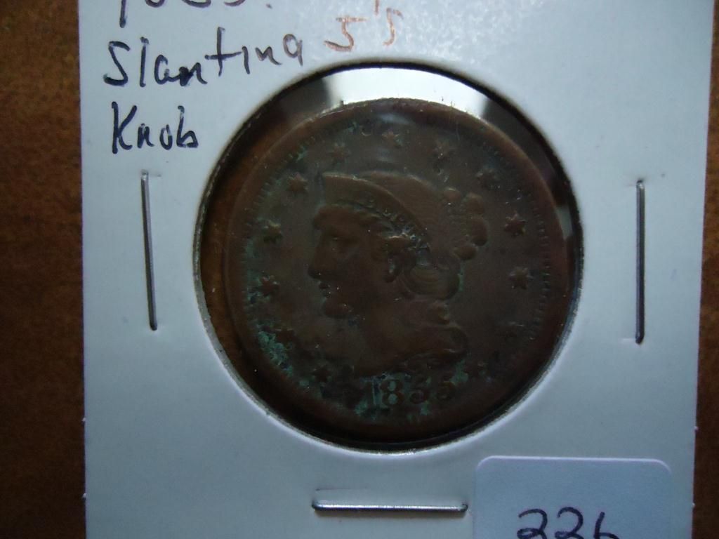 1855 SLANTING 5'S KNOB US LARGE CENT