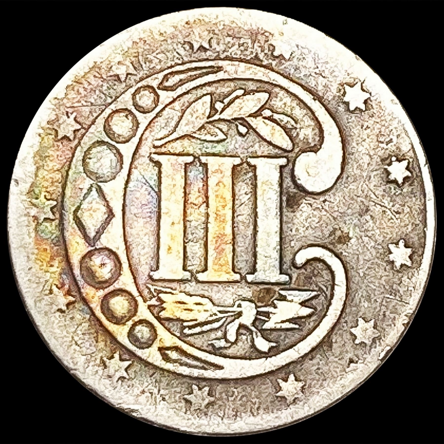 1855 Silver Three Cent LIGHTLY CIRCULATED
