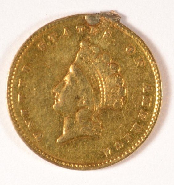 1855 T-2 GOLD DOLLAR XF-AU DAMAGED ON RIM, EX-JEWELRY, SAVE!