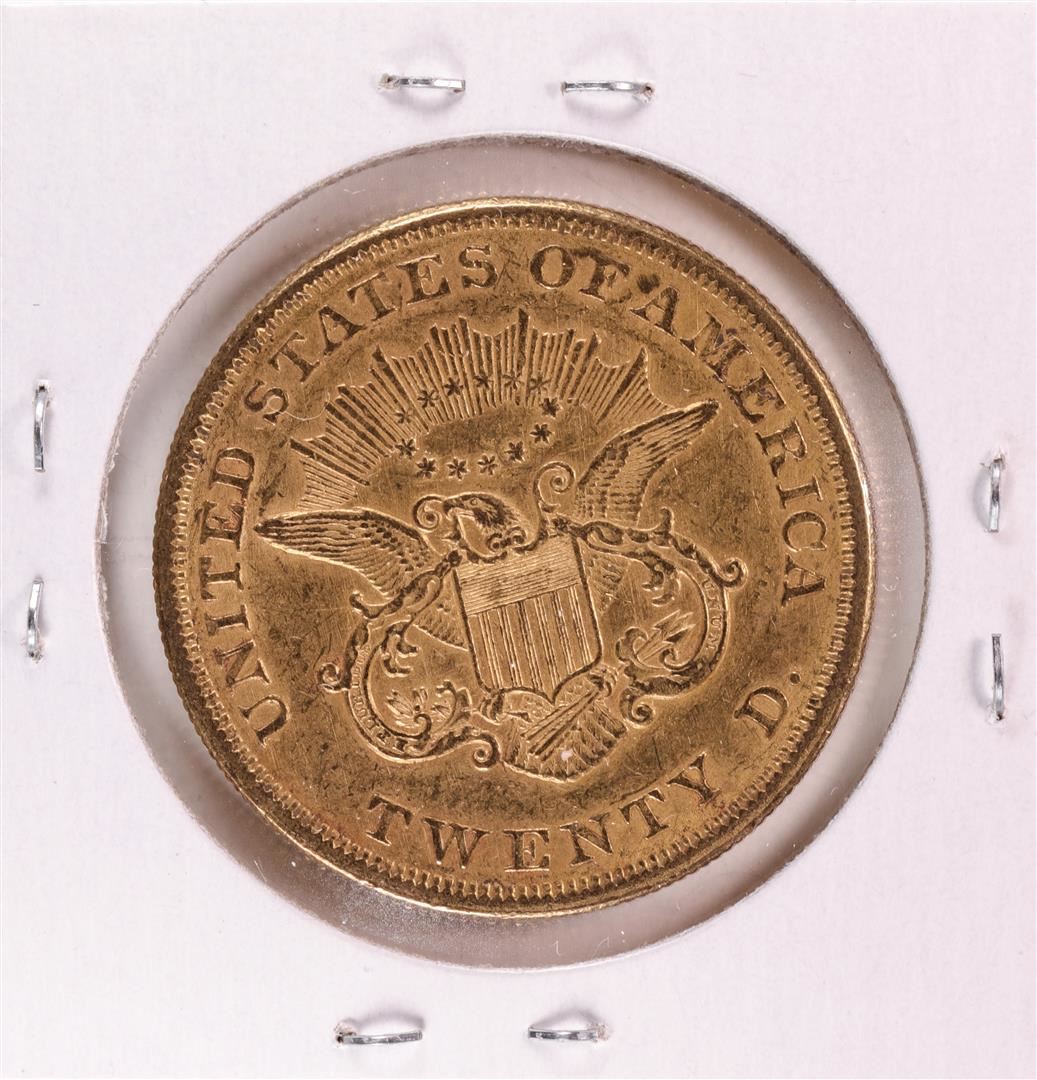 One 1855 Type 1 $20 Liberty Head Double Eagle Gold Coin.