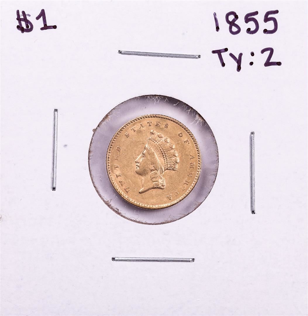 One 1855 Type 2 $1 Indian Princess Head Gold Dollar Coin.