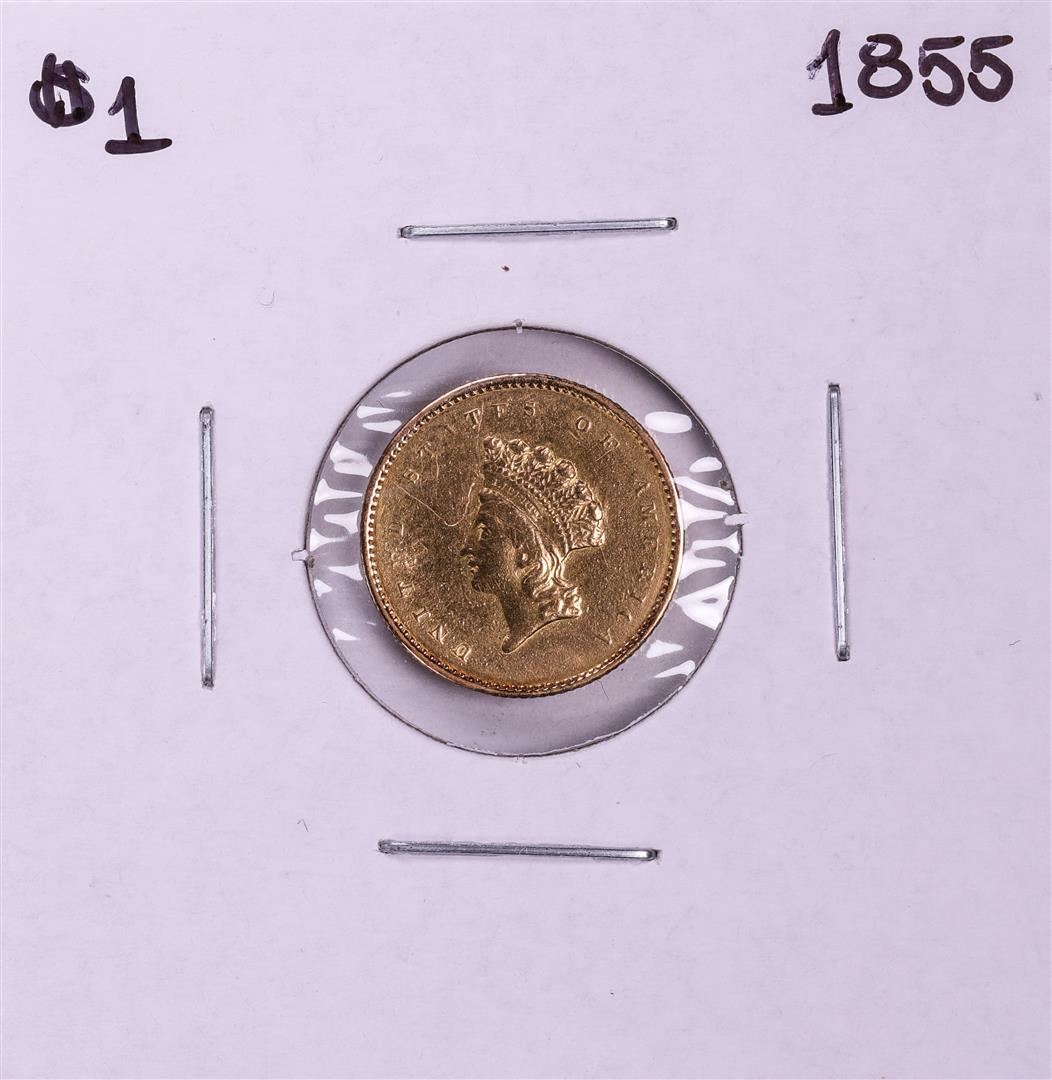 One 1855 Type 2 $1 Indian Princess Head Gold Dollar Coin.