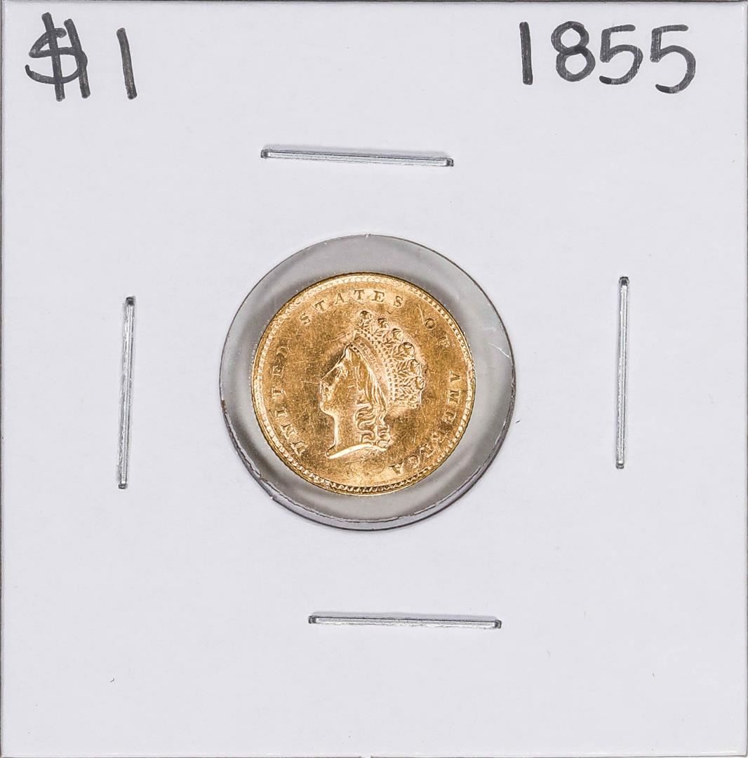One 1855 Type 2 $1 Indian Princess Head Gold Dollar Coin.