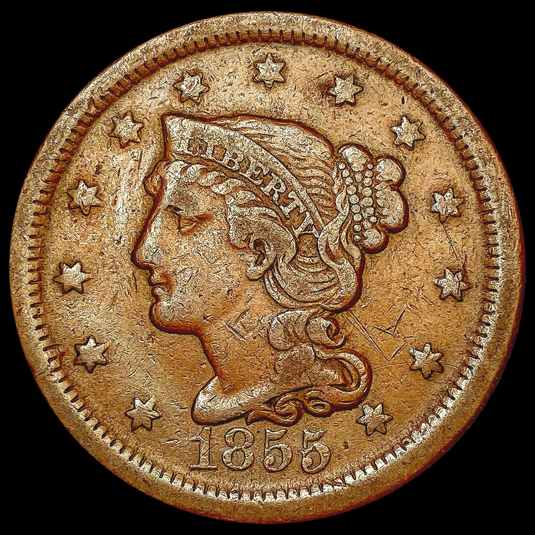 1855 Upright 5s Braided Hair Large Cent LIGHTLY CI