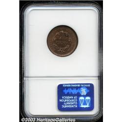 1856 1/2 C MS64 Red and Brown NGC. B-2, C-1, R.1. No rust pit on the I of UNITED. A splendid Half Cent with much of the original mint luster still intact. Sharply struck in the centers, some weakness is seen in the peripheral areas. Important notice: Heritage usually auctions material at the rate of 200-250 lots per hour. On some occasions eBay Live bid software or the Internet may not be able to keep up with the pace of the auction. We recommend placing a realistic absentee bid now as insurance to avoid disappointment. Occasionally the auctioneer may eliminate or reject an eBay Live bid, and the auctioneer may also reopen a lot after the close of the eBay live bidding (usually because we missed an audience bid), and may reject your bid even if it shows you as the winning bidder. By bidding via eBay Live, you agree that Heritage may award the lot to another bidder at its sole discretion under the circumstances described above or any other reasonable circumstances. Also please note that all Heritage lots purchased through eBay Live carry a 20% Buyer's Premium. Please make sure you read the Terms and Conditions before you bid.
