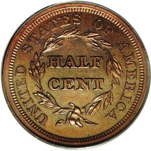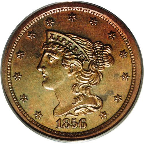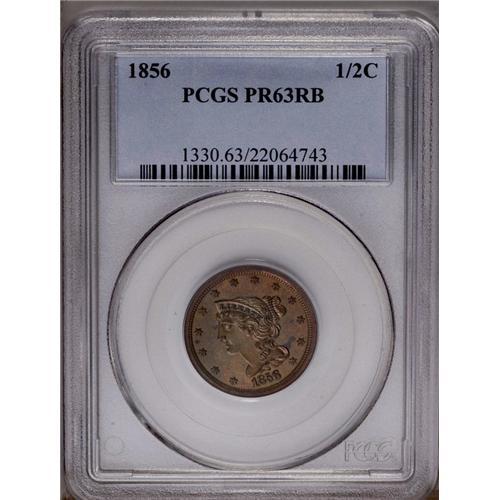 1856 1/2 C PR63 Red and Brown PCGS. B-1, R.7 as a proo 1856[1/2 C] PR63 Red and Brown PCGS.