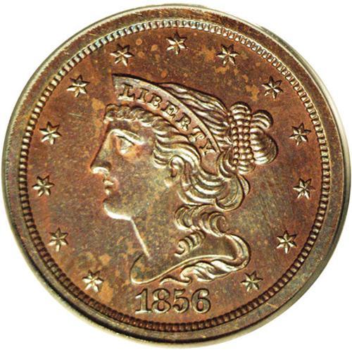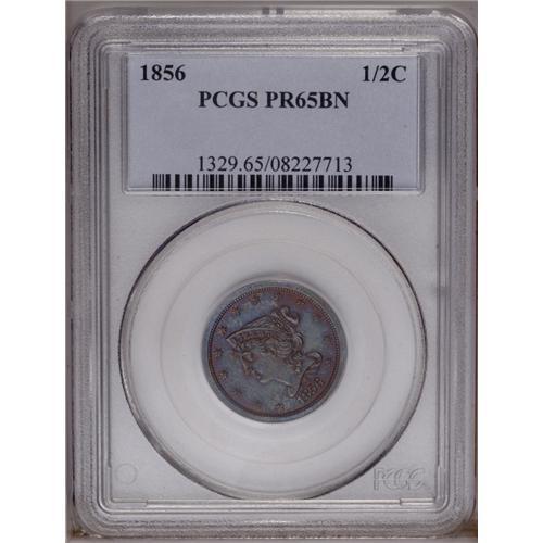 1856 1/2 C PR65 Brown PCGS. B-3, R.4. The T in CENT is 1856[1/2 C] PR65 Brown PCGS.