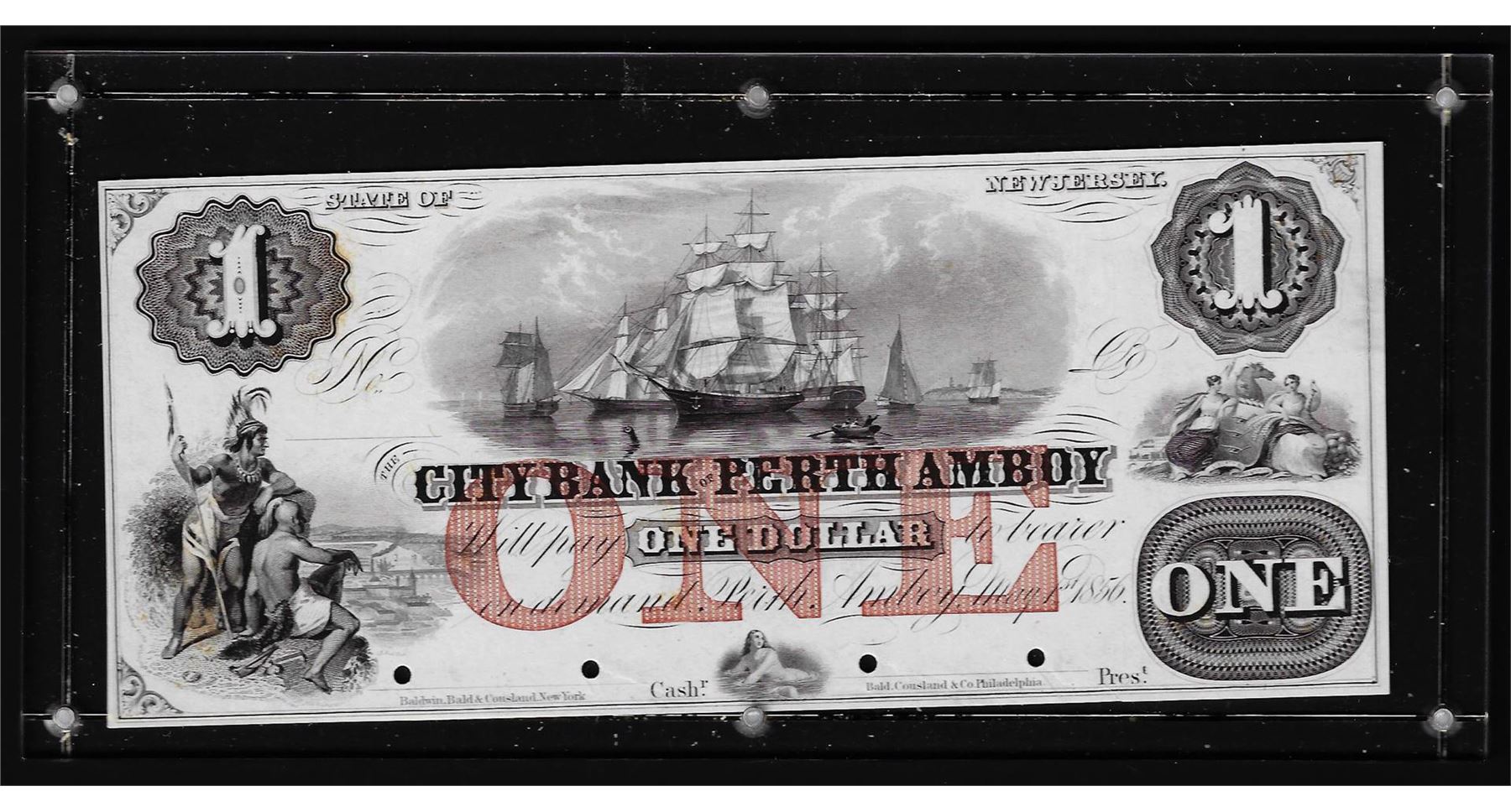 One 1856 $1 City Bank of Perth Amboy Obsolete Proof Note.