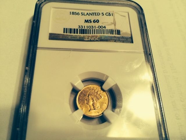 1856 $1 Liberty Slanted 5G NGC MS-60