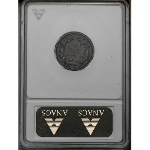 <B>1856<1C>--Cleaned Proof--ANACS. AU55 Details.</B></I> Snow-9. The field beneath STATES is smoothed, and the piece has been artificially darkened to make the repair less apparent. The eagle's breast and the highpoints of the front wing show brief wear. A collectible example of this legendary rarity.<BR><I>From The Steve Glenn Collection, Part Two.</B></I>