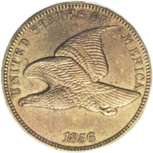 <B>1856<1C> MS62 PCGS. Eagle Eye Photo Seal, Card Included.</B></I> Snow-3. This coin is probably one of the 634-800 non-proof 1856 Flying Eagle cents that the Philadelphia Mint produced in 1856. Snow (2001) states that most of these coins were distributed to members of Congress as examples of the new copper-nickel cent. This is a satiny example whose fields exhibit a modest glow at certain angles. The surfaces are toned in tan-brown color with no mentionable blemishes save for a few minuscule carbon spots in the reverse field around the denomination. A little softly struck over the eagle's central breast feathers, which is characteristic of nearly all representatives of the Snow-3 delivery.<BR><I>From The Tide Collection.</B></I>