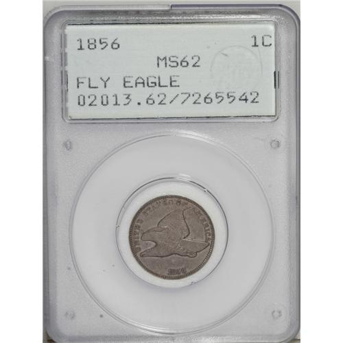 1856 1C MS62 PCGS. Eagle Eye Photo Seal, Card Included