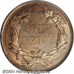 <table><tr><td><table><tr><td>1856 1C MS64 PCGS. Snow-9. This is a fully defined near-Gem with medium brown surfaces that reveal subtle blue and lilac undertones as the coin rotates under a light. Glimpses of faded orange color highlight each side, being seen primarily at the margins. The importance and popularity of the 1856 Flying Eagle Cent to collectors of all kinds is difficult to overstate. The uncommonly Choice representative offered here, which closely resembles a proof striking, should prove to be the object of keen bidder interest. <BR><BR><B>Important notice:</B> Heritage usually auctions material at the rate of 200-250 lots per hour. On some occasions eBay Live bid software or the Internet may not be able to keep up with the pace of the auction. We recommend placing a realistic absentee bid now as insurance to avoid disappointment. Occasionally the auctioneer may eliminate or reject an eBay Live bid, and the auctioneer may also reopen a lot after the close of the eBay live bidding (usually because we missed an audience bid), and may reject your bid even if it shows you as the winning bidder. By bidding via eBay Live, you agree that Heritage may award the lot to another bidder at its sole discretion under the circumstances described above or any other reasonable circumstances. Since eBay bids are not shown to us until we open the lot on the floor, we treat those bids just like floor bids. In most cases the floor responds before the eBay bid is presented to us, due to Internet lag time, so for consistency we have made it a policy that floor bids are always considered first over tie eBay live bids. Also please note that all Heritage lots purchased through eBay Live carry a 20% Buyer's Premium. Please make sure you read the Terms and Conditions before you bid. <BR><BR><B>IMPORTANT ANNOUNCEMENT ABOUT RESERVES:</B> Heritage now divulges all reserves on its web site 7 days before every auction. If you want to know whether the reserve on this lot has been met, and if not, what the reserve amount is, please visit this lot page on the HeritageCoin.com web site, or email: bid@HeritageGalleries.com </span></font></td></tr></table></td></tr></table>