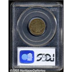 1856 1C PR58 PCGS. Snow-9. This is the most prevalent variety of the 1856 Flying Eagle Cent. Snow-9 is technically a restrike that, according to Rick Snow (2001), was produced starting in 1858. The striking period for this die marriage probably went through 1860, if not later. As these coins were prepared for distribution to collectors, there is a fairly high percentage of examples extant. A pleasing lightly circulated representative, this deeply toned coin is overlaid in steel-gray hues with golden-orange accents. The strike is expectantly full for a proof, and the surfaces are remarkably mark-free for the assigned grade. Important notice: Heritage usually auctions material at the rate of 200-250 lots per hour. On some occasions eBay Live bid software or the Internet may not be able to keep up with the pace of the auction. We recommend placing a realistic absentee bid now as insurance to avoid disappointment. Occasionally the auctioneer may eliminate or reject an eBay Live bid, and the auctioneer may also reopen a lot after the close of the eBay live bidding (usually because we missed an audience bid), and may reject your bid even if it shows you as the winning bidder. By bidding via eBay Live, you agree that Heritage may award the lot to another bidder at its sole discretion under the circumstances described above or any other reasonable circumstances. Also please note that all Heritage lots purchased through eBay Live carry a 20% Buyer's Premium. Please make sure you read the Terms and Conditions before you bid.