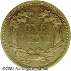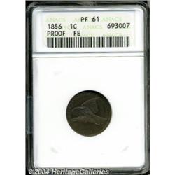 <B>1856<1C> PR61 ANACS.</B></I> Snow-9 is technically a restrike that, according to Rick Snow (2001), was produced starting in 1858. The striking period for this die marriage probably went through 1860, if not later. These coins were prepared for solely for distribution to collectors at the time. Traces of modest, shimmering brightness are noted as the coin rotates under the light, but the outward appearance is one of even charcoal-gray coloration. Direct angles also reveal flickers of faint crimson and golden overtones. An expectantly sharp specimen striking with remarkably smooth surfaces for the assigned grade. A strike-through resembling a planchet flaw is seen at the center of the reverse. Close examination under a loupe reveals feather-like detail inside the cavity. We suspect a piece of an obverse flaked off, adhered to the reverse die, and was subsequently struck into this piece. An uncommon error, especially on an 1856 Flying Eagle Cent. <BR><BR><B>Important notice:</B> Heritage usually auctions material at the rate of 200-250 lots per hour. On some occasions eBay Live bid software or the Internet may not be able to keep up with the pace of the auction. We recommend placing a realistic absentee bid now as insurance to avoid disappointment. Occasionally the auctioneer may eliminate or reject an eBay Live bid, and the auctioneer may also reopen a lot after the close of the eBay live bidding (usually because we missed an audience bid), and may reject your bid even if it shows you as the winning bidder. By bidding via eBay Live, you agree that Heritage may award the lot to another bidder at its sole discretion under the circumstances described above or any other reasonable circumstances. Since eBay bids are not shown to us until we open the lot on the floor, we treat those bids just like floor bids. In most cases the floor responds before the eBay bid is presented to us, due to Internet lag time, so for consistency we have made it a policy that floor bids are always considered first over tie eBay live bids. Also please note that all Heritage lots purchased through eBay Live carry a 20% Buyer's Premium. Please make sure you read the Terms and Conditions before you bid. </span></font></tr></table></td></tr></table>