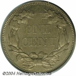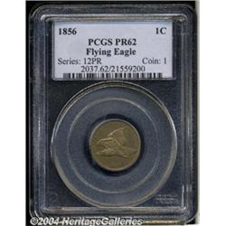 <B>1856<1C> PR62 PCGS.</B></I> Snow-9. A die line through the I in UNITED and a small mint-made spike on the left ribbon end verify the die pairing. A needle-sharp example of the perpetually popular first year Flying Eagle Cent. Olive-gold in color, with lighter peach hues throughout the margins and legends. The reverse is well preserved, as is the majority of the obverse. A few very faint hairlines near the date are all that deny a higher assessment from PCGS. A pair of interesting and fully retained laminations (as made) are noted on the reverse border at 3 and 9 o'clock.<BR><I>From The Harold W. Anderson Collection, Part Two.</B></I> <BR><BR><B>Important notice:</B> Heritage usually auctions material at the rate of 200-250 lots per hour. On some occasions eBay Live bid software or the Internet may not be able to keep up with the pace of the auction. We recommend placing a realistic absentee bid now as insurance to avoid disappointment. Occasionally the auctioneer may eliminate or reject an eBay Live bid, and the auctioneer may also reopen a lot after the close of the eBay live bidding (usually because we missed an audience bid), and may reject your bid even if it shows you as the winning bidder. By bidding via eBay Live, you agree that Heritage may award the lot to another bidder at its sole discretion under the circumstances described above or any other reasonable circumstances. Since eBay bids are not shown to us until we open the lot on the floor, we treat those bids just like floor bids. In most cases the floor responds before the eBay bid is presented to us, due to Internet lag time, so for consistency we have made it a policy that floor bids are always considered first over tie eBay live bids. Also please note that all Heritage lots purchased through eBay Live carry a 20% Buyer's Premium. Please make sure you read the Terms and Conditions before you bid. </span></font></tr></table></td></tr></table>