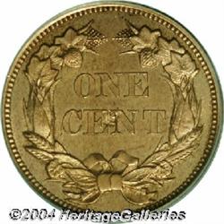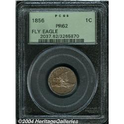 <B>1856<1C> PR62 PCGS.</B></I> Snow-9. A lovely key date Cent that has an exacting strike and no obtrusive abrasions. Light chestnut-brown in color, a hint of gunmetal-blue patina appears when the coin is rotated under a light. A small mint-made planchet flaw on the central reverse, a tiny spot near the final A in AMERICA, and a faint mark below the ST in STATES are perhaps conservatively assessed by PCGS. Certified in an older green label holder. <BR><BR><B>Important notice:</B> Heritage usually auctions material at the rate of 200-250 lots per hour. On some occasions eBay Live bid software or the Internet may not be able to keep up with the pace of the auction. We recommend placing a realistic absentee bid now as insurance to avoid disappointment. Occasionally the auctioneer may eliminate or reject an eBay Live bid, and the auctioneer may also reopen a lot after the close of the eBay live bidding (usually because we missed an audience bid), and may reject your bid even if it shows you as the winning bidder. By bidding via eBay Live, you agree that Heritage may award the lot to another bidder at its sole discretion under the circumstances described above or any other reasonable circumstances. Since eBay bids are not shown to us until we open the lot on the floor, we treat those bids just like floor bids. In most cases the floor responds before the eBay bid is presented to us, due to Internet lag time, so for consistency we have made it a policy that floor bids are always considered first over tie eBay live bids. Also please note that all Heritage lots purchased through eBay Live carry a 20% Buyer's Premium. Please make sure you read the Terms and Conditions before you bid.