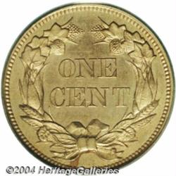 <table><tr><td><table><tr><td>1856 1C PR64 PCGS. Snow-9. An exquisitely struck and luminous near-Gem that displays the full plumage and wreath definition that is rarely encountered on business strikes of this design. Freckles of honey-gold patina dominate the upper right obverse and visit the reverse periphery. A minute contact mark is centered below the AM in AMERICA and a thin planchet flaw of mint origin crosses the right pendant of the T in UNITED; these two trivial items are mentioned solely to provide pedigree markers since they do not begin to challenge the seemingly conservative grade. The 1856 is a numismatic classic because it serves as the entry into the Small Cent series, and it also helped launch the first coin collecting boom in the United States. <BR><BR><B>Important notice:</B> Heritage usually auctions material at the rate of 200-250 lots per hour. On some occasions eBay Live bid software or the Internet may not be able to keep up with the pace of the auction. We recommend placing a realistic absentee bid now as insurance to avoid disappointment. Occasionally the auctioneer may eliminate or reject an eBay Live bid, and the auctioneer may also reopen a lot after the close of the eBay live bidding (usually because we missed an audience bid), and may reject your bid even if it shows you as the winning bidder. By bidding via eBay Live, you agree that Heritage may award the lot to another bidder at its sole discretion under the circumstances described above or any other reasonable circumstances. Since eBay bids are not shown to us until we open the lot on the floor, we treat those bids just like floor bids. In most cases the floor responds before the eBay bid is presented to us, due to Internet lag time, so for consistency we have made it a policy that floor bids are always considered first over tie eBay live bids. Also please note that all Heritage lots purchased through eBay Live carry a 20% Buyer's Premium. Please make sure you read the Terms and Conditions before you bid. <BR><BR><B>IMPORTANT ANNOUNCEMENT ABOUT RESERVES:</B> Heritage now divulges all reserves on its web site 7 days before every auction. If you want to know whether the reserve on this lot has been met, and if not, what the reserve amount is, please visit this lot page on the HeritageCoin.com web site, or email: bid@HeritageGalleries.com </span></font></td></tr></table></td></tr></table>