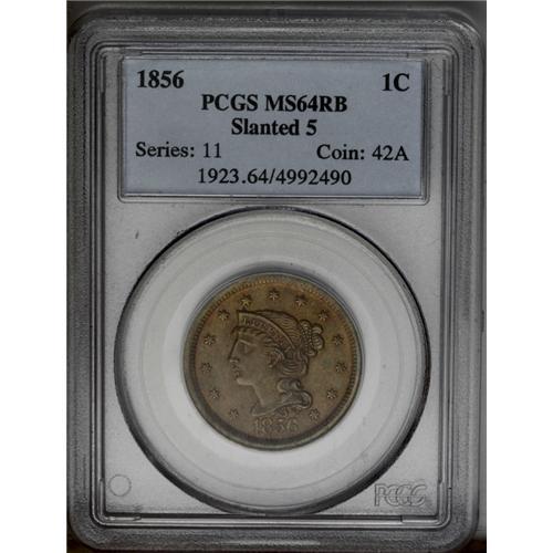 1856 1C Slanted 5 MS64 Red and Brown PCGS. N-2, R.1. G