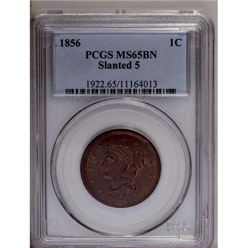 1856 1C Slanted 5 MS65 Brown PCGS. N-16, R.2. The earl 1856