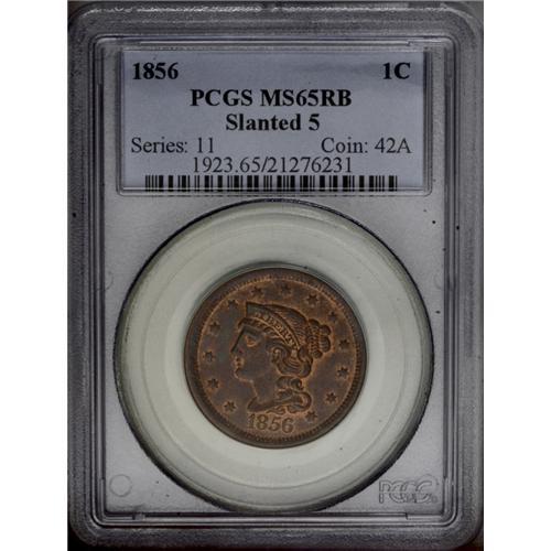 1856 1C Slanted 5 MS65 Red and Brown PCGS. N-2, R.1. D