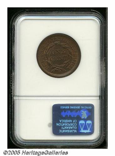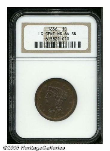 <B>1856<1C> Upright 5 MS64 Brown NGC.</B></I> N-6, R.1. An early die state that features ample original orange color across the reverse legends. The obverse also offers hints of mint gold color. The smooth chocolate-brown surfaces are only faintly marked and have merely a whisper of carbon.