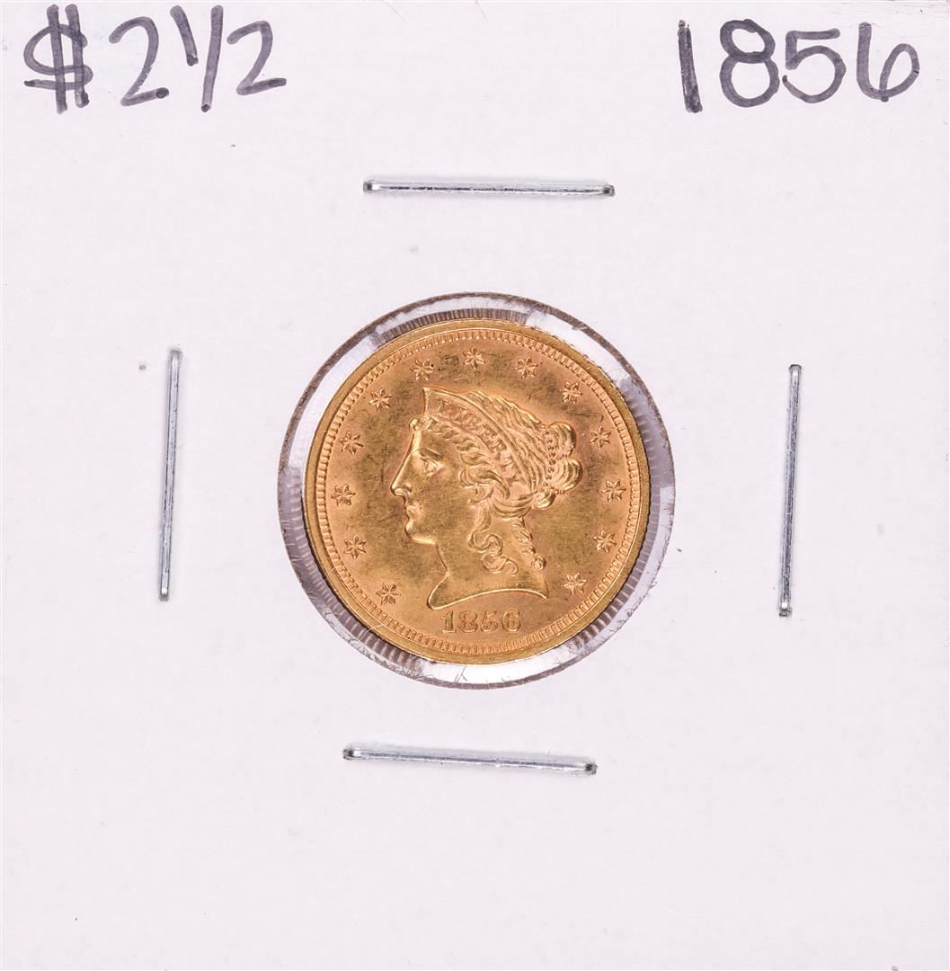 One 1856 $2 1/2 Liberty Head Quarter Eagle Gold Coin.