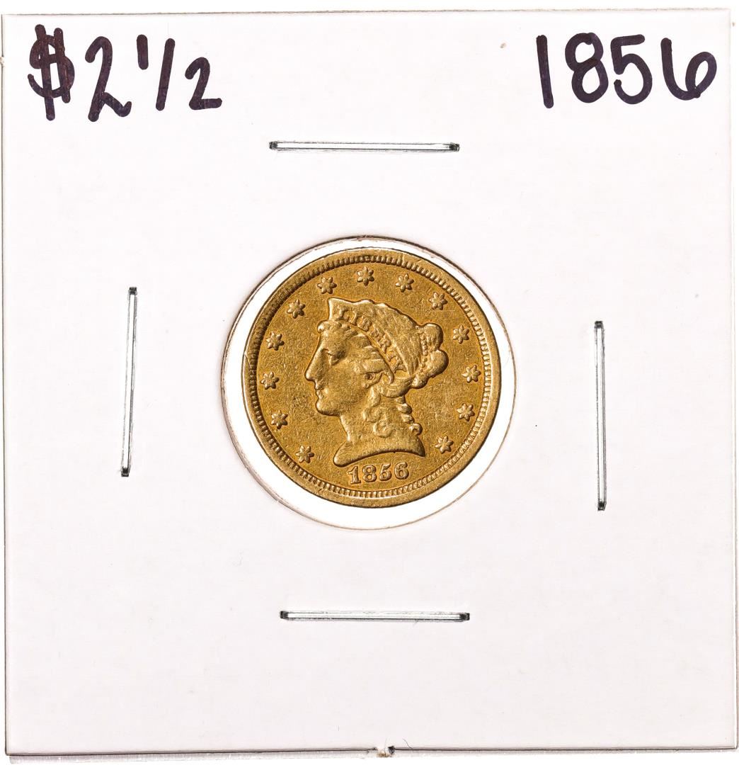One 1856 $2 1/2 Liberty Head Quarter Eagle Gold Coin.