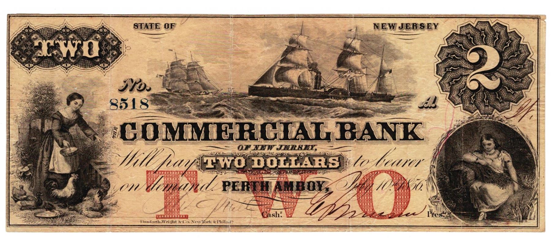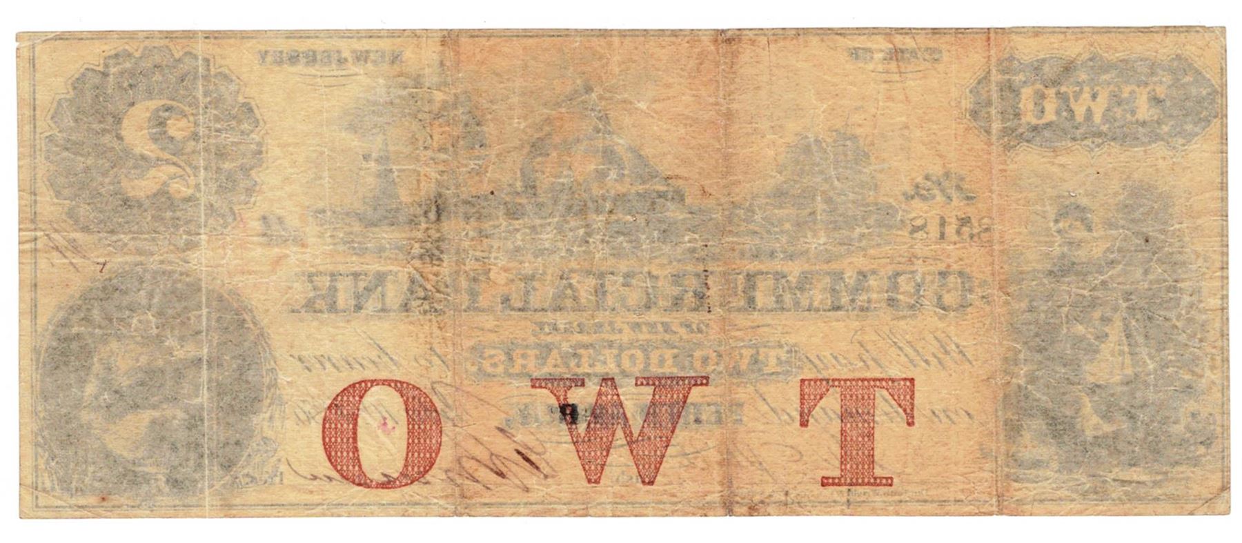 One 1856 $2 Commercial Bank Of New Jersey - Bank Note - Split on top