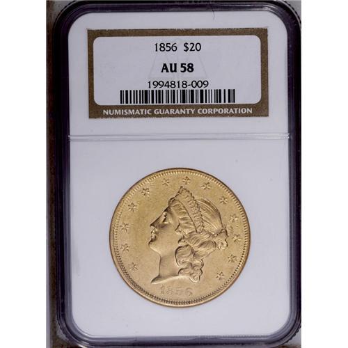 1856 $20 AU58 NGC. Minimally marked for the grade, the 1856[$20] AU58 NGC.