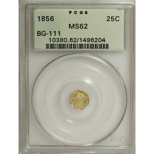 <B>1856 25C Liberty Octagonal 25 Cents, BG-111, R.3, MS62 PCGS.</B></I> PCGS Population (80/116). NGC Census: (10/15). (#10380)<BR><BR><b>Shipping:</b> Coins & Currency (<a target="_blank" href="http://www.heritageauctions.com/common/shipping.php">view shipping information</a>)