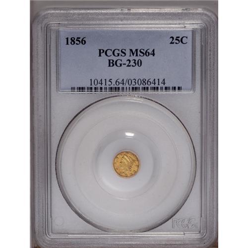 1856 25C Liberty Round 25 Cents, BG-230, Low R.4, MS64