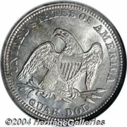 <table><tr><td><table><tr><td>1856 25C MS65 NGC. Lustrous and very clean with a thin coating of medium gray-green toning over each side. Kept from a an even higher grade by a weak strike in the centers. <BR><BR><B>Important notice:</B> Heritage usually auctions material at the rate of 200-250 lots per hour. On some occasions eBay Live bid software or the Internet may not be able to keep up with the pace of the auction. We recommend placing a realistic absentee bid now as insurance to avoid disappointment. Occasionally the auctioneer may eliminate or reject an eBay Live bid, and the auctioneer may also reopen a lot after the close of the eBay live bidding (usually because we missed an audience bid), and may reject your bid even if it shows you as the winning bidder. By bidding via eBay Live, you agree that Heritage may award the lot to another bidder at its sole discretion under the circumstances described above or any other reasonable circumstances. Since eBay bids are not shown to us until we open the lot on the floor, we treat those bids just like floor bids. In most cases the floor responds before the eBay bid is presented to us, due to Internet lag time, so for consistency we have made it a policy that floor bids are always considered first over tie eBay live bids. Also please note that all Heritage lots purchased through eBay Live carry a 20% Buyer's Premium. Please make sure you read the Terms and Conditions before you bid. <BR><BR><B>IMPORTANT ANNOUNCEMENT ABOUT RESERVES:</B> Heritage now divulges all reserves on its web site 7 days before every auction. If you want to know whether the reserve on this lot has been met, and if not, what the reserve amount is, please visit this lot page on the HeritageCoin.com web site, or email: bid@HeritageGalleries.com </span></font></td></tr></table></td></tr></table>